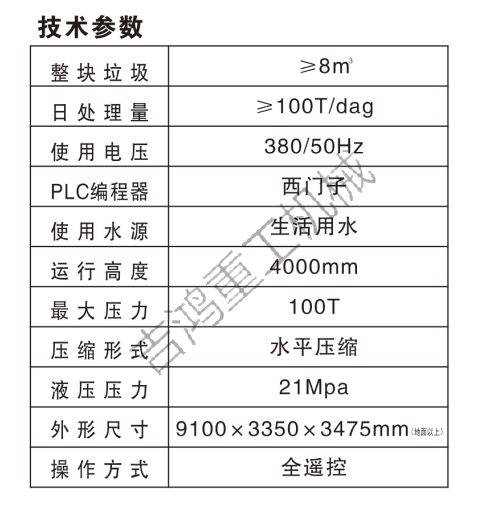 JHZG3120型垂直三缸四柱垃圾壓縮中轉站